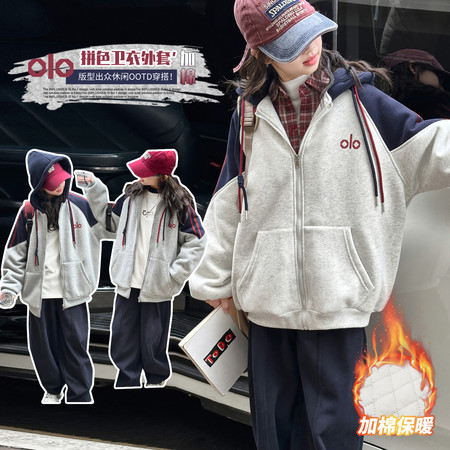 1*0下载视频“T336韩系红色加绒卫衣套装”