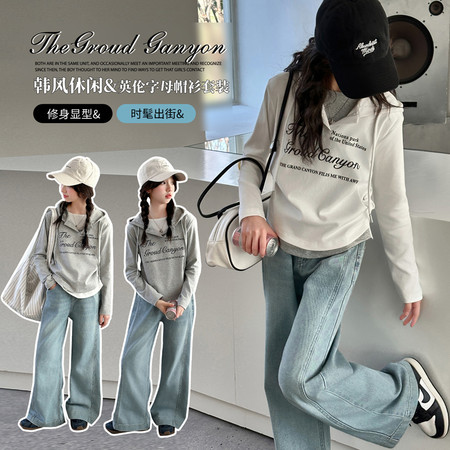 1*2收藏“T2610假两件打底牛仔套装”